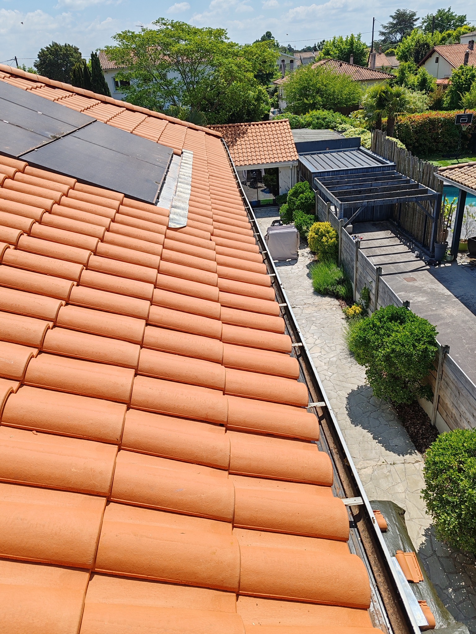 Nous assurons également le nettoyage et l’entretien de toiture, le démoussage, le nettoyage de gouttières et l’entretien de panneaux photovoltaïques.